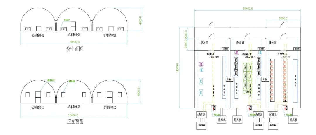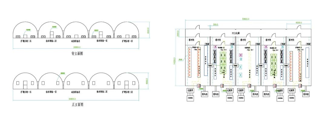 气膜结构就能保持一定的刚度,再配合送排风系统,照明系统,自动化控制系统和核酸检测设备,组成了核酸检测实验室。