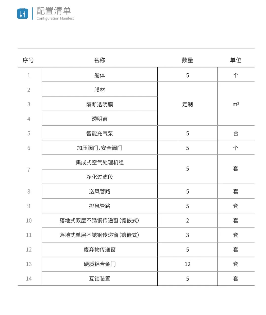 【附】“博科号”气膜方舱详细参数和配置清单: