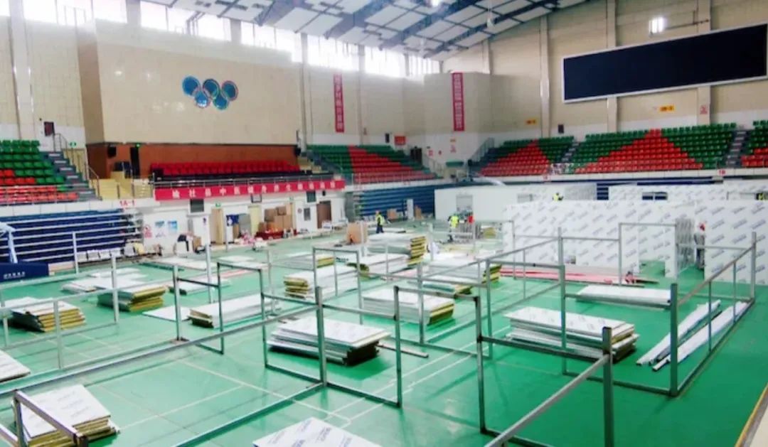 山西榆社县体育馆方舱医院项目4月9日收到施工通知,博科建筑4月10日晚到达体育馆。在当地封闭式施工管理的背景下,榆社县政府与博科建筑群策群力敲定施工方案,同心合力进行施工管理,快马加鞭进行改造施工,4月14日16点,在短短四天三夜的时间内,体育馆方舱医院项目全部施工完成。
