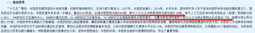 国家在“十三五”期间通过多项政策也对乡镇卫生院、中医医院的普及率做出了明确的规划: