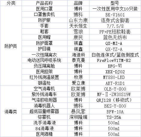 附产品清单