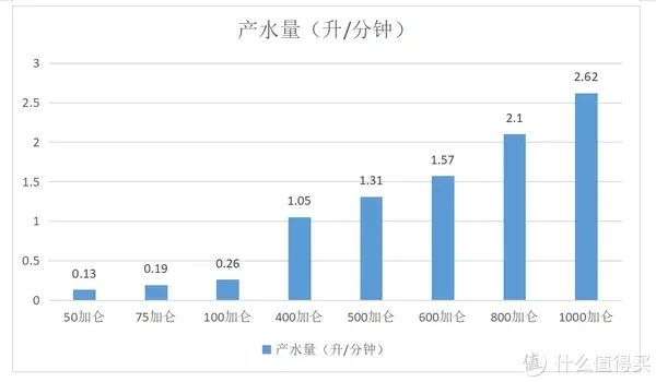 产水量是指RO膜的产水量,有罐机因为有压力罐存水,出水量和产水量并不一致。当压力罐满水时,龙头出水量会远大于产水量,一般多在1.5到2.5升/min 之间。但是一次性用水量超过压力罐存水量时,就需要等待制水了。