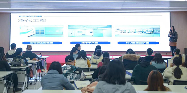 首先,山东建筑大学外国语学院师生一行观看了博科集团企业宣传片,对集团有了初步的认识。随后,相月明女士就集团整体概况、发展历程及战略规划进行了详细介绍,并邀请美华国际业务主管于倩倩女士与学弟学妹们分享工作经验和规划。