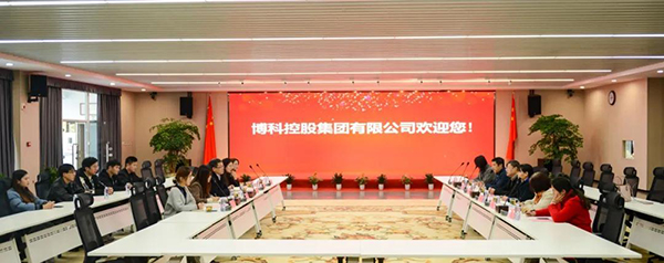在副总裁袁文虎先生的带领下,梁院长一行参观了共同体共享展厅以及办公区域,重点对公司产品、经营现状、战略规划及园区发展情况进行了介绍。梁院长对博科近几年的飞速发展表示震撼,并对企业发展前景充满信心。随后,双方座谈交流,梁院长就学校专业设置情况进行了详细介绍,并表示博科集团业务领域与学校众多专业匹配度较高,希望从建立稳定的联络机制开始进行资源互通,深化合作共同促进产教融合。