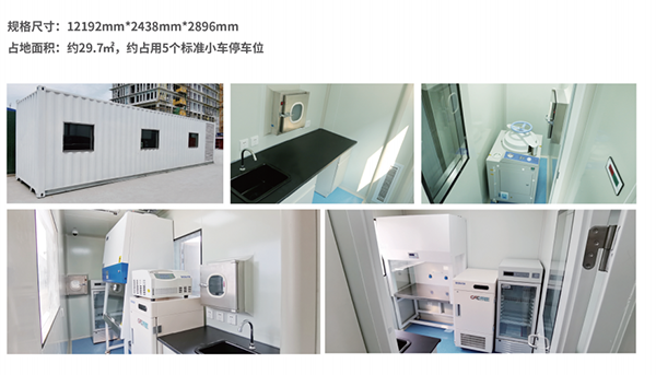 存放占地面积30m³左右。应急时可作为车载实验室使用,运到疫情发生地时简单调试即可使用。