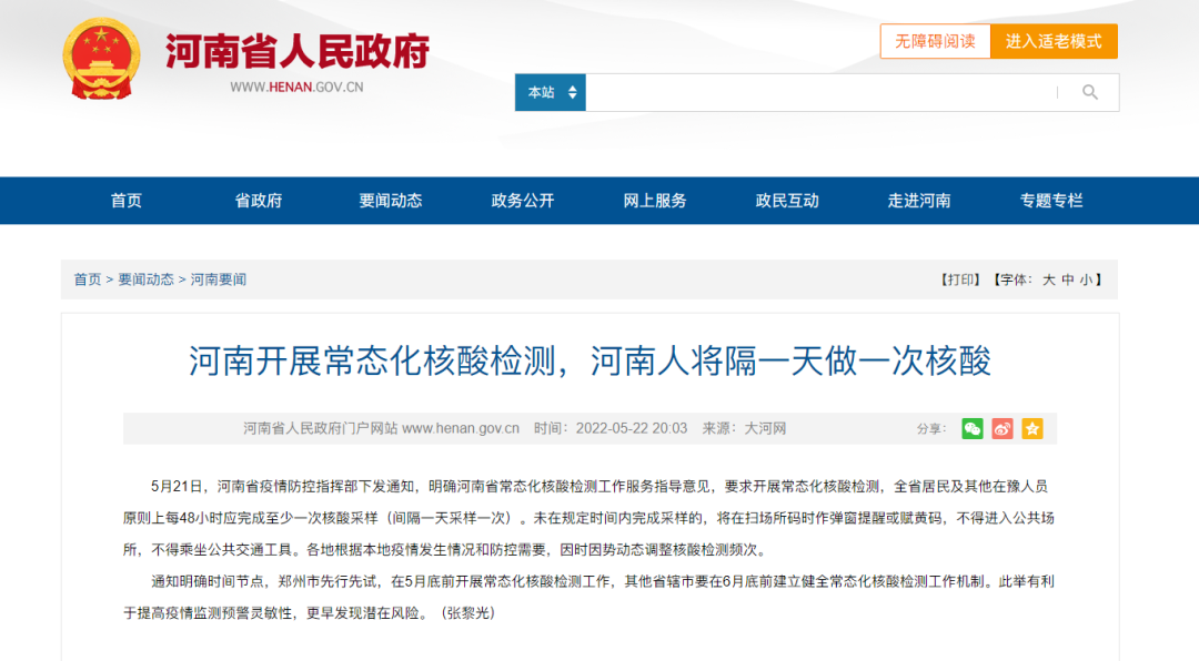 河南开展常态化核酸检测,在豫人将隔一天做一次核酸,年估算投入近1100亿!