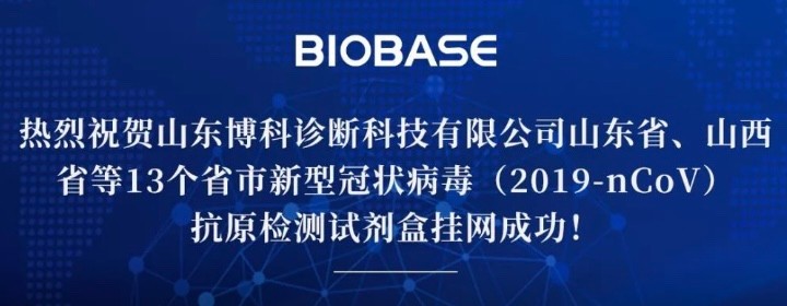 热烈祝贺山东博科诊断科技有限公司山东省、山西省等13个省市新型冠状病毒(2019-nCoV)抗原检测试剂盒挂网成功!