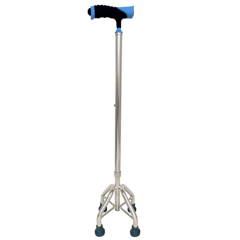 手杖由一个或多个支脚、一个手柄(手柄套)、连接支脚和手柄的手柄杆和拐杖凳板组成。无源产品。用于行动障碍患者的辅助行走或站立,进行康复训练。