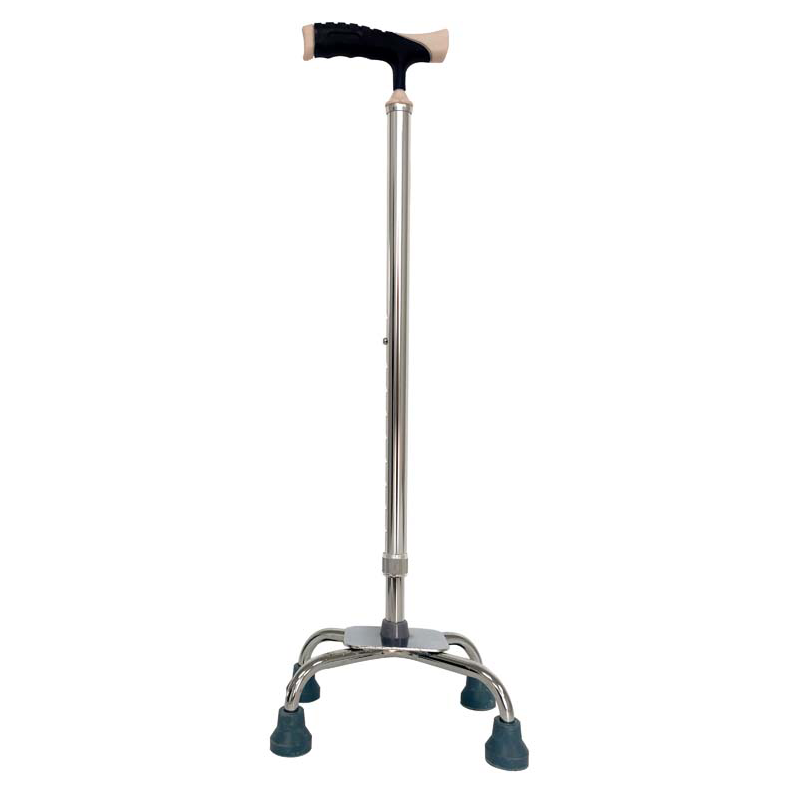 手杖由一个或多个支脚、一个手柄(手柄套)、连接支脚和手柄的手柄杆和拐杖凳板组成。无源产品。用于行动障碍患者的辅助行走或站立,进行康复训练。