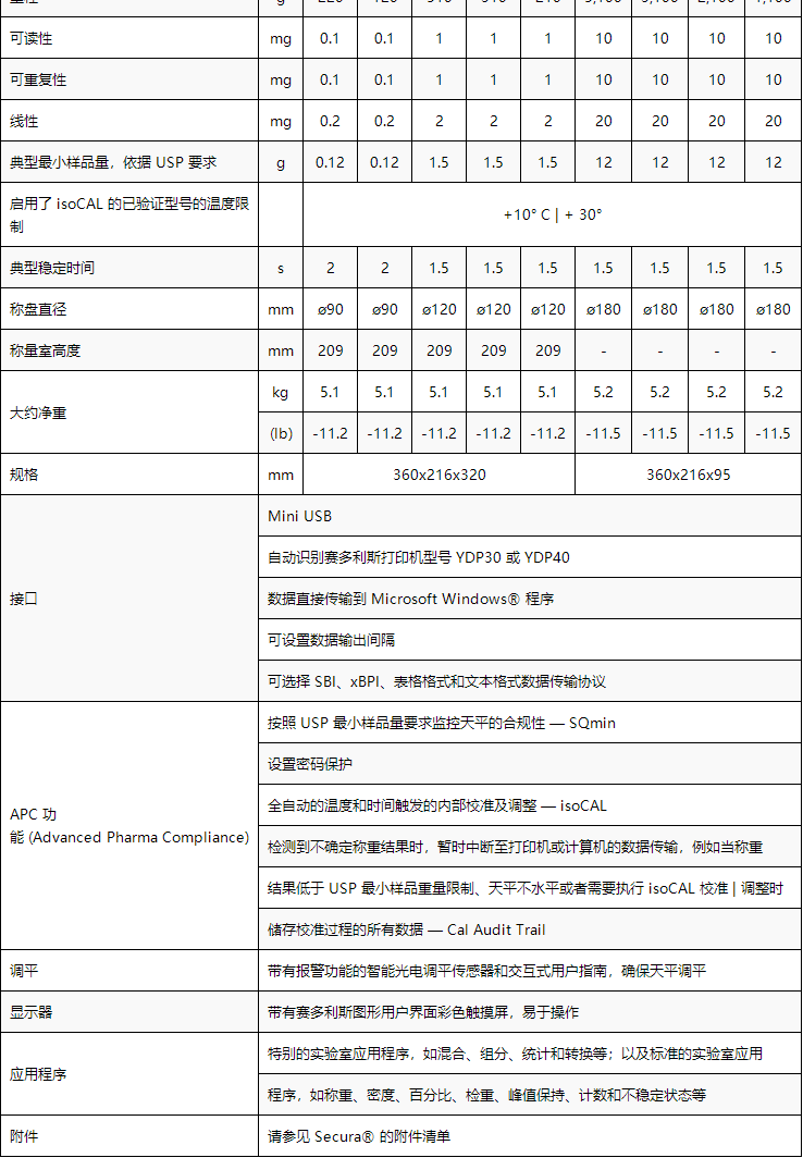 全新的Secura 系列电子天平符合 USP 最小样品量要求, 确保了操作过程的一律可靠性。