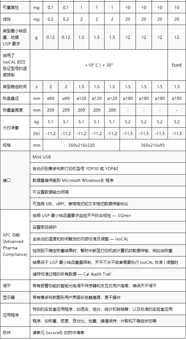 全新的Secura 系列电子天平符合 USP 最小样品量要求, 确保了操作过程的一律可靠性。