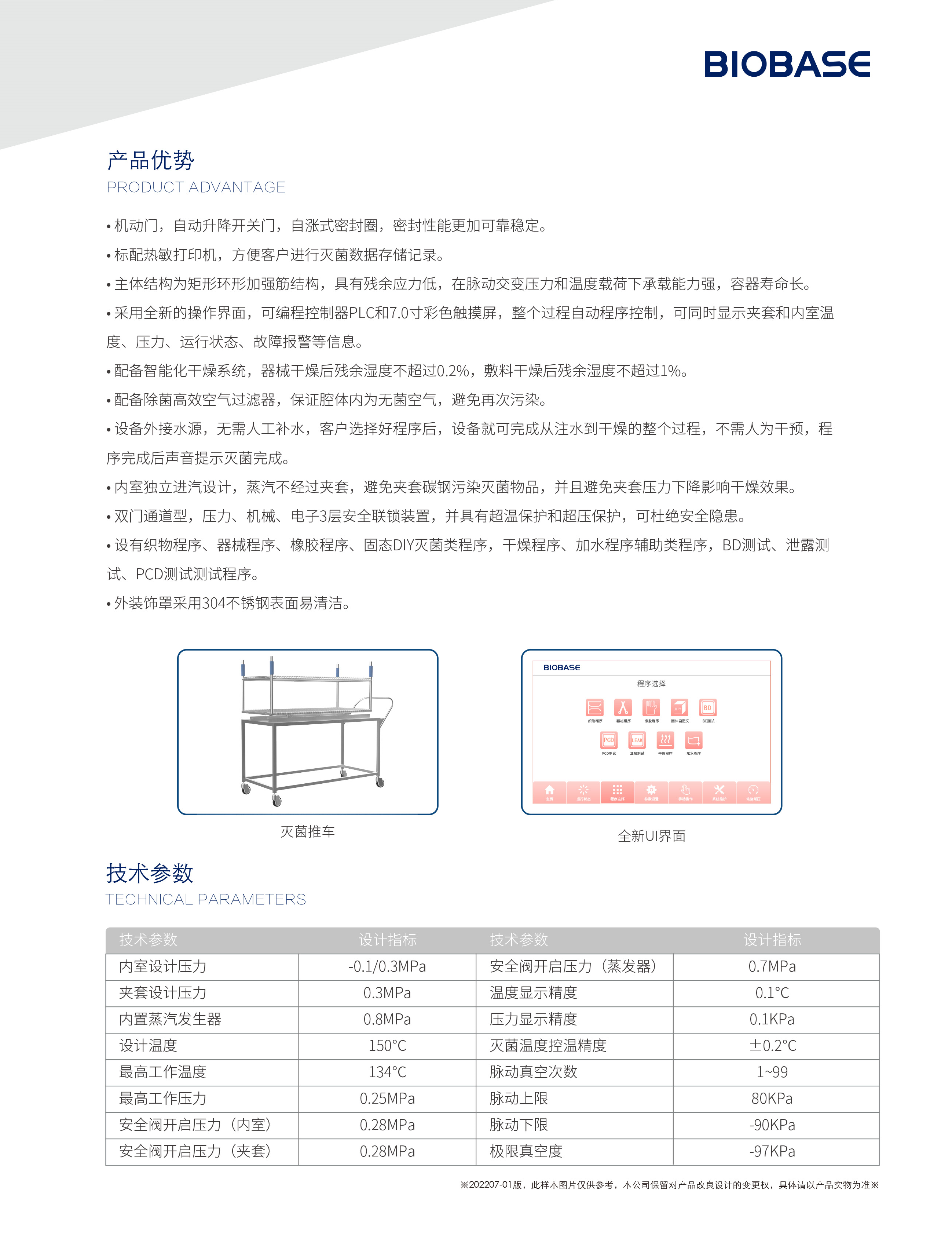 450L。脉动真空+双开门+矩形灭菌主体+PLC编程控制+7.0寸彩色触摸显示屏+标配打印机+不锈钢蒸发器