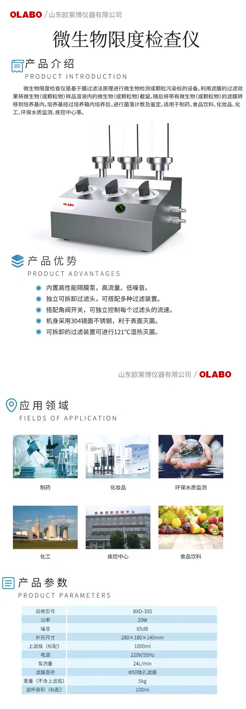 微生物限度检查仪是基于膜过滤法原理进行微生物检测或颗粒污染标的设备。利用滤膜的过滤效果将微生物(或颗粒物)样品溶液内的微生物(或颗粒物)截留。随后将带有微生物(或颗粒物)的滤膜转移到培养基内。培养基经过培养箱内培养后,进行菌落计数及鉴定。适用于制药、食品饮料、化妆品、化工、环保水质监测、疾控中心等。