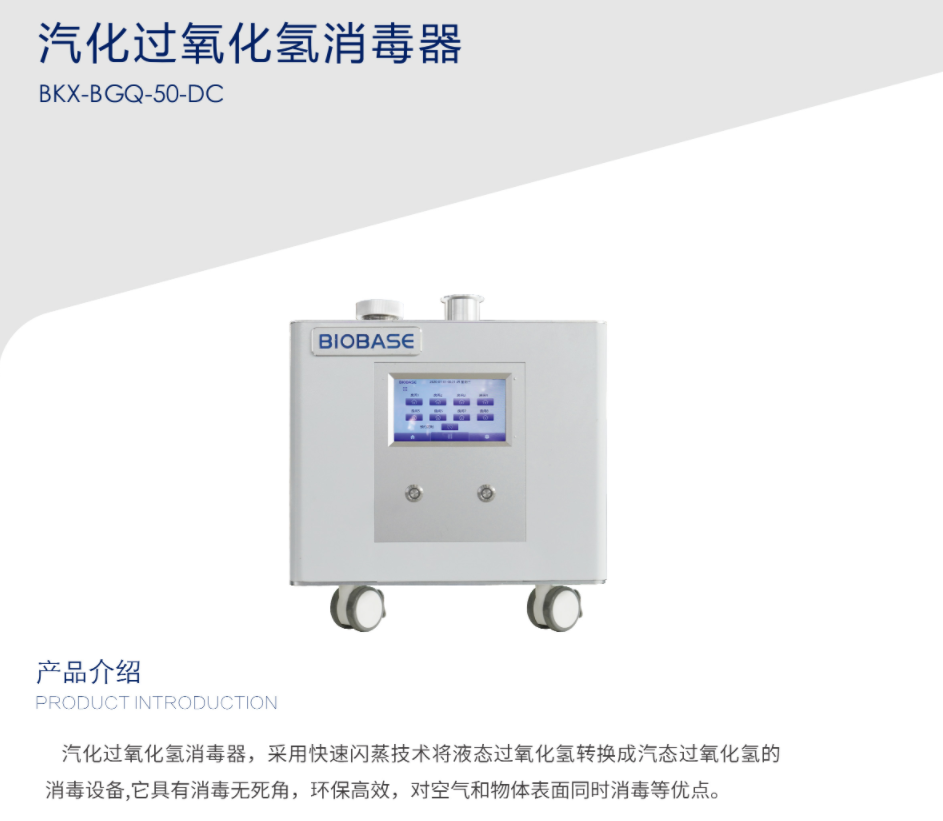 BKXBGQ50DC汽化过氧化氢消毒器采用快速闪蒸技术将液态过氧化氢转换成汽态过氧化氢的消毒设备,它具有消毒无死角,环保高效,对空气和物体表面同时消毒等优点。