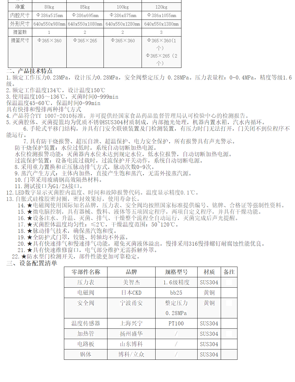 11、采用重力置换和正压脉动排气方式,排出负载和灭菌室内冷空气,内置水箱,少量外排蒸汽。