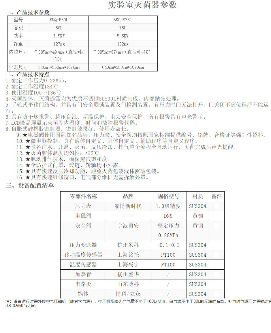 1.实验室灭菌器具备移动探头,可实时监测液体内部灭菌情况 2.设备占用空间小,腔体容积大 3.快速水冷系统,用于液体的有效计安全灭菌 4.机器内置独立蒸汽发生器 5.自涨式硅胶密封圈,密封效果好,使用寿命长,采用透明医用硅胶模压而成 6.实时检测并显示腔内灭菌温度,显示精度为0.1℃ 7.灭菌循环结束,蜂鸣提示 8.内置打印机 标配,可实时打印灭菌数据 9.操作面板,一键启动,方便快捷,按键采用机械式按键,动作次数≥10万次 10.去离子水接口,用于供应蒸汽发生器