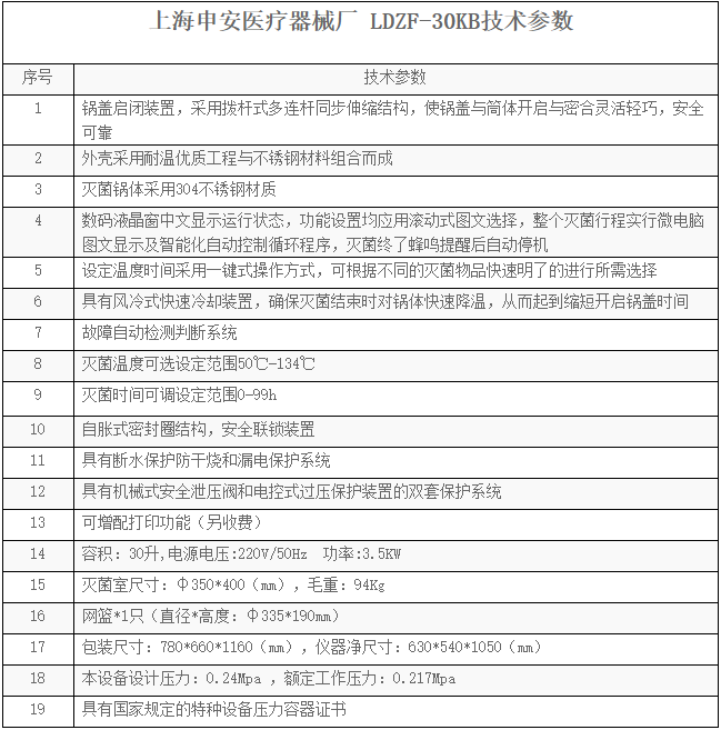 本品为医疗器械产品,属于压力容器受控产品,符合压力容器设计与制作的相关规定,并取得了食药监产品注册证和消毒产品卫生许可证,是我厂研制开发的新一代智能型立式压力蒸汽灭菌器,具有快捷简便的操作方式和功能齐全的控制系统,在安全控制上;具有超压自泄、断水保护、超温自控的数套安全联锁的装置。本品操作系统采用微机自动处理技术,灭菌运行过程实行微机自动控制,操控台上的液晶显示窗显示整个灭菌动态和功能运行情况,产品主要部件采用不锈钢材料精制而成,灭菌指标达到医用手术级标准,是供医疗机构对可耐压力、耐高温蒸汽的医疗器械或卫生用品进行灭菌或消毒的理想产品。