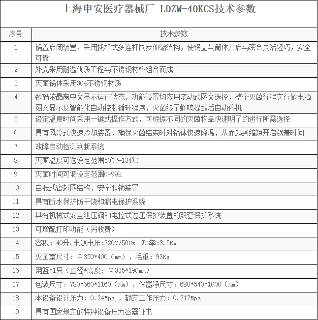> 申安LDZM-40KCS不锈钢自控压力灭菌器