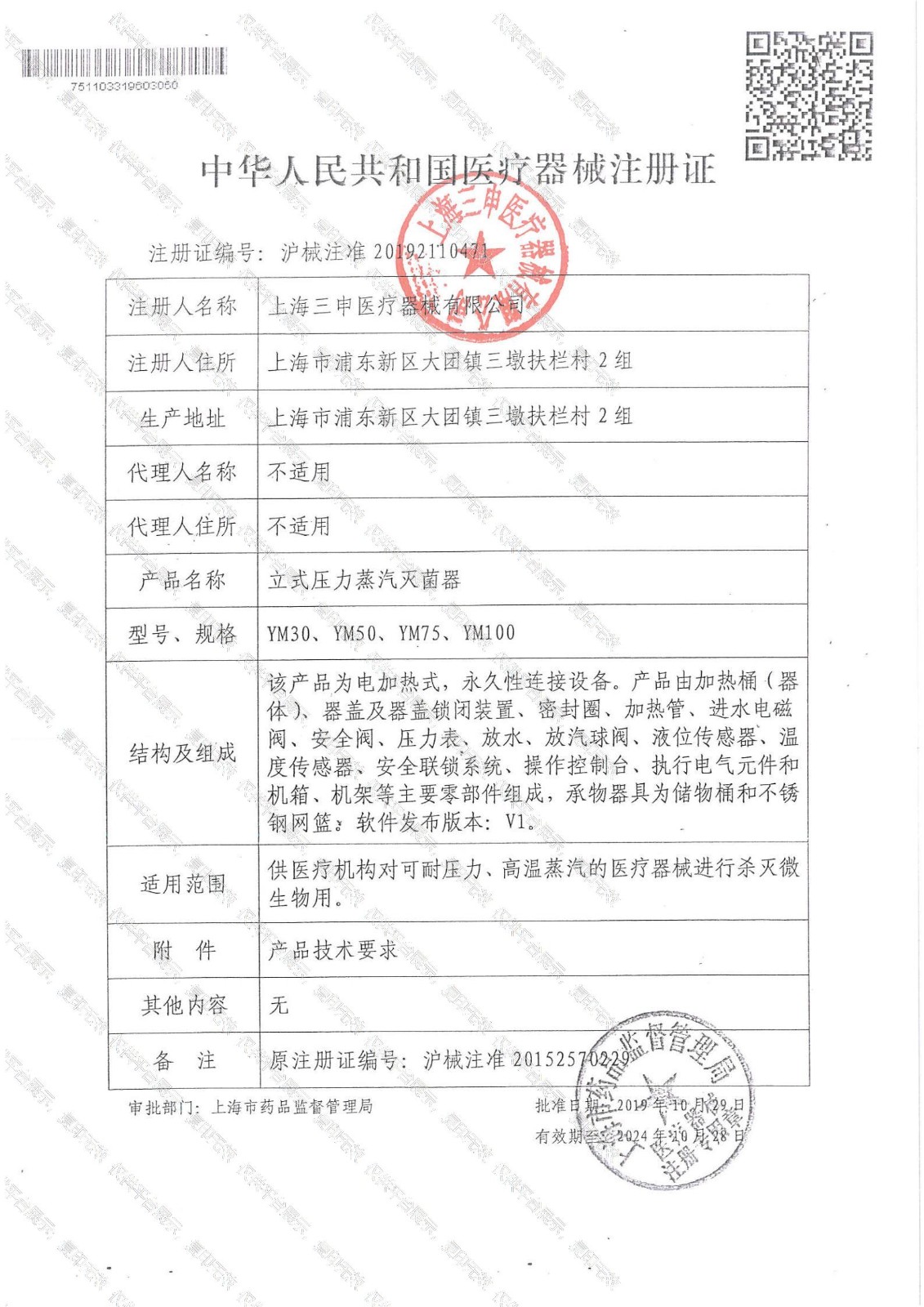 > 三申YM75不锈钢立式压力电热蒸汽灭菌器