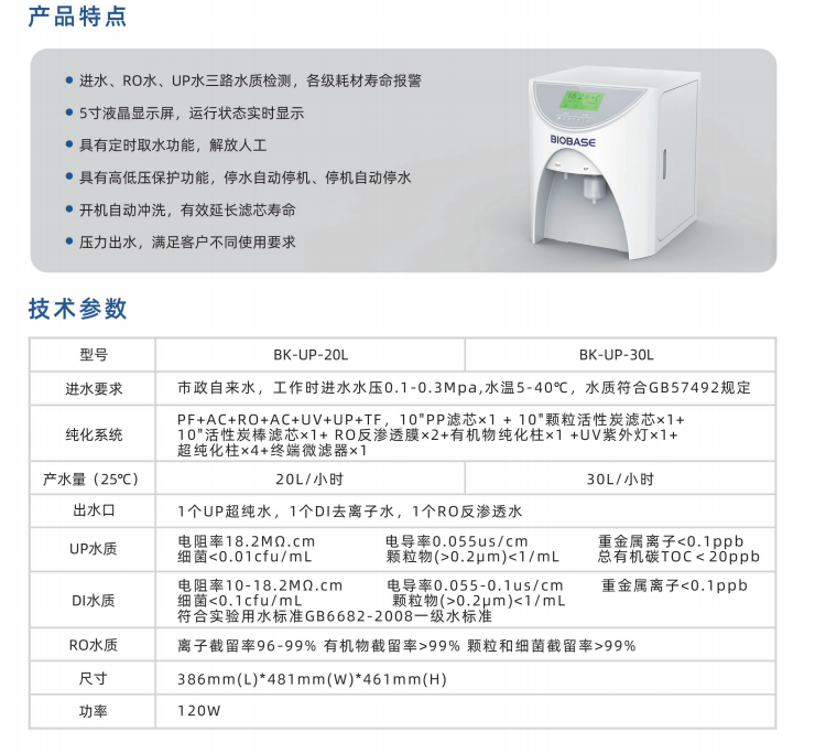 博科BK-UP-20L超纯水机 智鑫