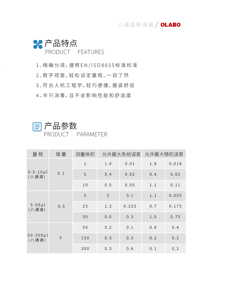 > 欧莱博OLABO半只消毒8道可调移液器5-50μl