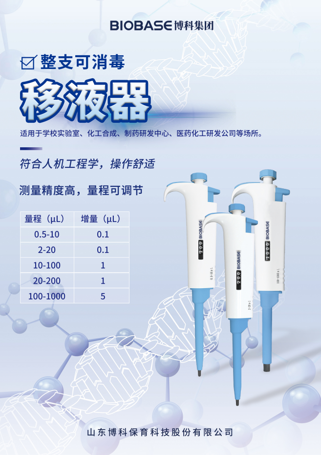 当前位置 > 首页 > 产品中心  > 样品前处理 > 移液器> 博科/BIOBASE单道可调移液器20-200μl
