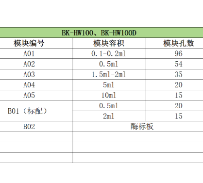 多模块可选择,标配0.5~2ml模块,模块孔数≥35孔