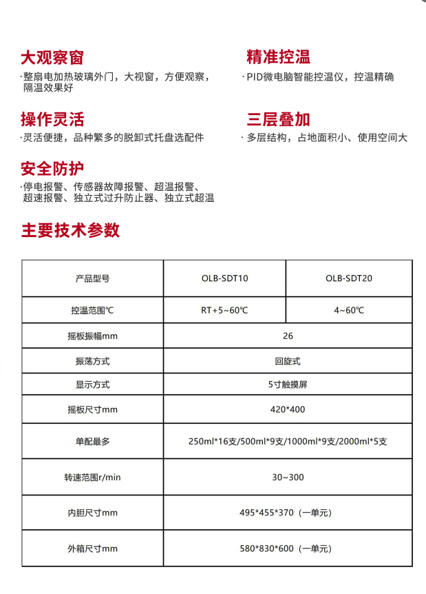 17.机器运行微处理器控制并具有系统自动检测功能:温度超高/低报警,非正常关机报警,使工作人员随时知道设备运行是否正常;振荡(电机)出现故障、设备的门在没关严的情况下自动报警,报警方式为声光报警.
