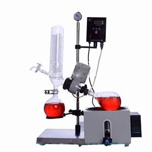 旋转蒸发器是在真空负压条件下,利用恒温加热,薄膜蒸发的原理研制而成。旋转蒸发器用无级调速使玻璃旋转瓶恒速旋转,物料在瓶壁形成大面积均匀薄膜,再由智能恒温水浴锅对旋转瓶均匀加热,在真空条件下高速蒸发,溶媒蒸气经高效玻璃冷凝器冷却,回收于收集瓶。