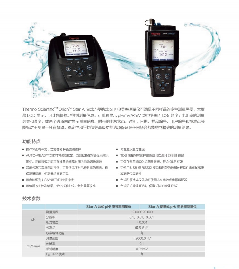 > 赛默飞StarA台式pH/电导率测量仪