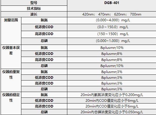 化学需氧量(COD)、氨氮、总磷,其中COD分高浓度和低浓度两个量程。主要用于环保领域的水质检测。