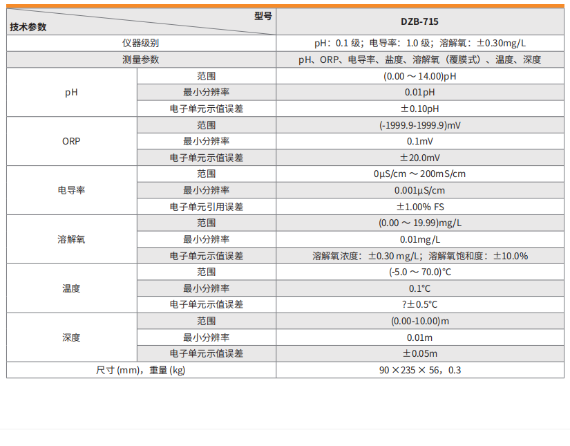 可测参数有pH、ORP、电导、盐度、溶解氧、温度、深度、压力