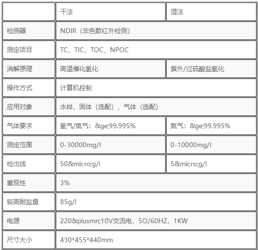 上海元析仪器有限公司推出的TOC分析仪,具有干法(高温催化氧化燃烧法)和湿法(化学加紫外射线消解法)两种。
