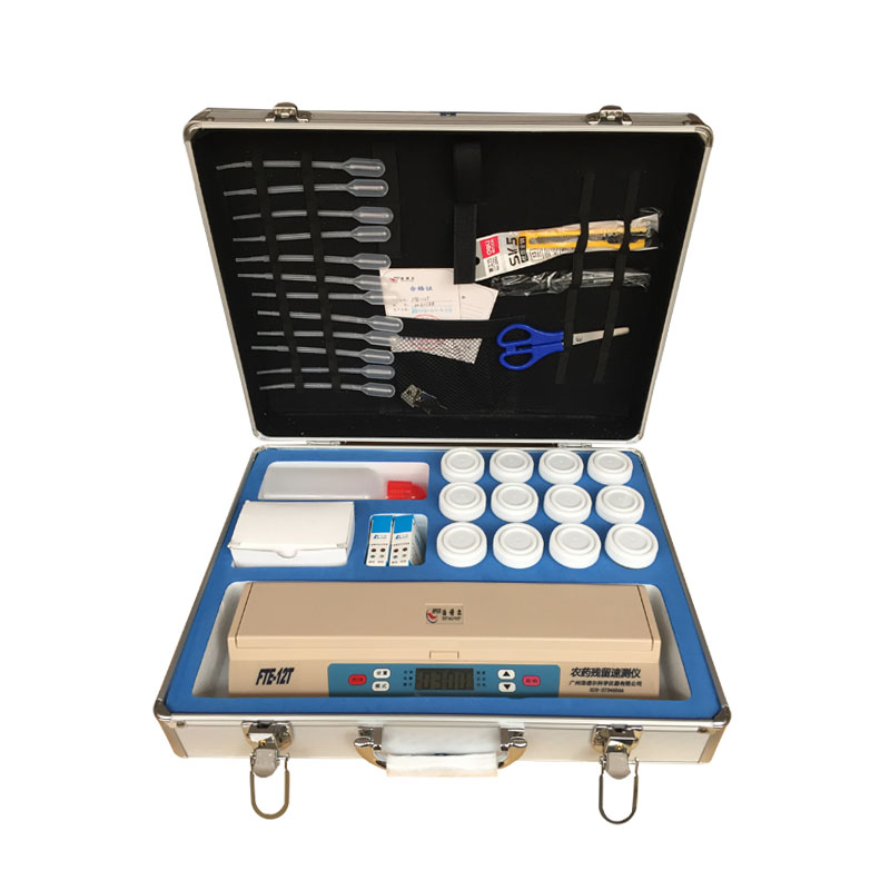便携式农药残留速测仪是根据国家标准方法GB/T5009.199-2003《蔬菜中有机磷和氨基甲酸酯类农药残留量的快速检测》中的速测卡法(纸片法)而专门设计的仪器。主要用于果、蔬、茶、粮食、水及土壤中有机磷和氨基甲酸酯类农药的快速检测,特别适用于农产品质量检测站的快速检测;果蔬生产基地和专业户采摘前田间地头检测;农贸批发销售市场现场检测;酒楼、食堂、家庭果蔬、茶加工前的安全检测。