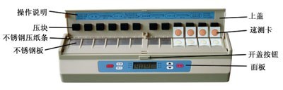 仪器的检测原理是利用速测卡中的胆碱酯酶(白色药片)可催化靛酚乙酸酯(红色药片)水解为乙酸与靛酚,由于有机磷和氨基甲酸酯类农药对胆碱酯酶的活性有抑制作用,使催化水解后的显色发生改变,因此根据显色的不同,即可判断样品中含有机磷或氨基甲酸酯类农药的残留情况。