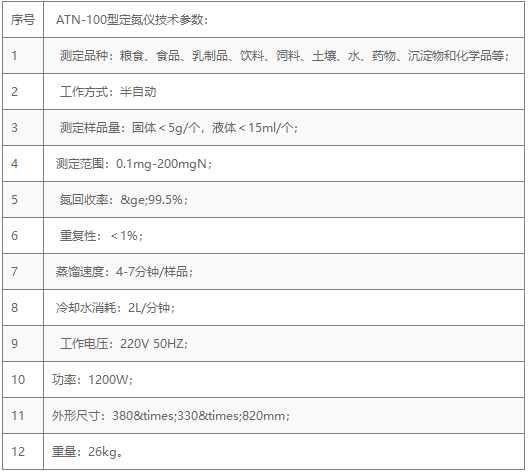 ATN-100型定氮仪技术参数:
