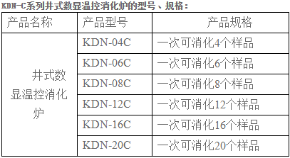 KDN-C系列井式数显温控消化炉有4孔、6孔、8孔、12孔、16孔、20孔可选。可根据用户的检测量的大小选配,消化一批样品约需40分钟(依含氮量)。消化时逸出的SO2等有害气体通过消化炉上的排污管经抽气三通从水中排入下水道。