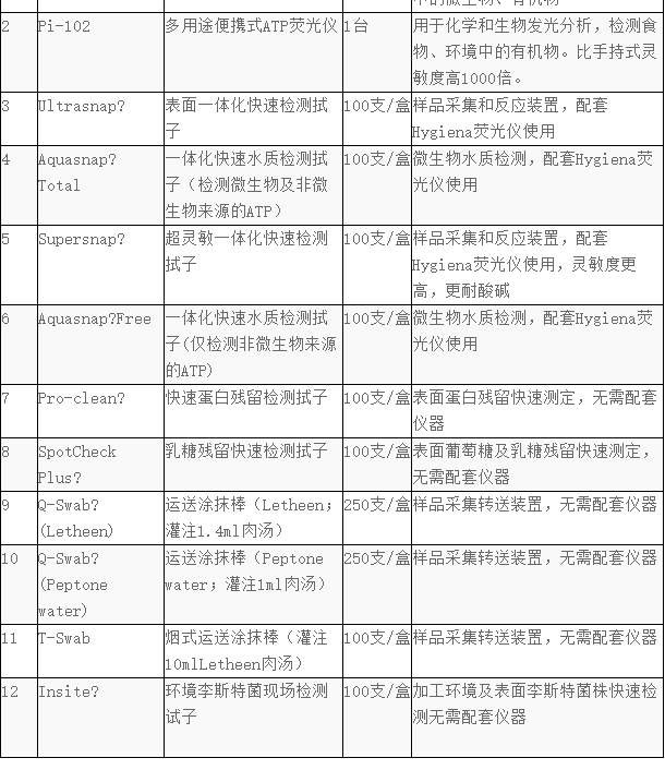 含有新型的高灵敏度液态稳定一体化试剂, 检测物体表面上的细菌或其它微生物以及食物残留物中所含的总ATP活性,给出快速全面的洁净检测结果。