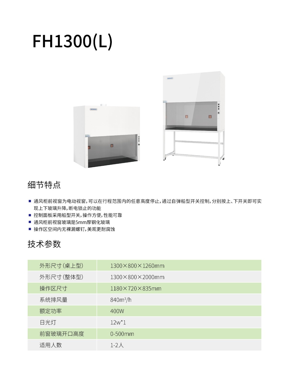 > 博科通风柜FH1300(L)(桌上型)