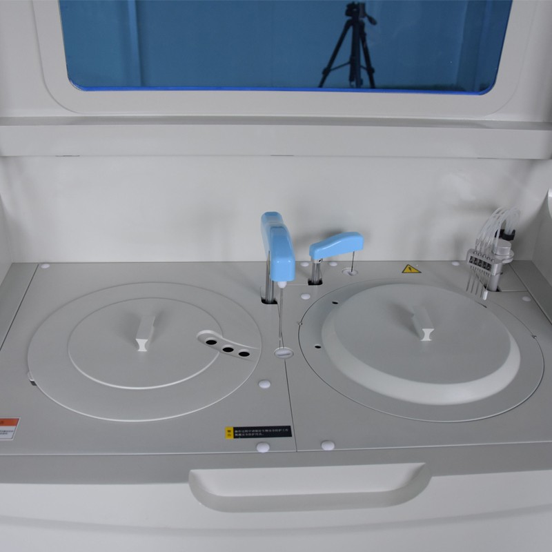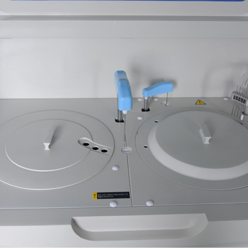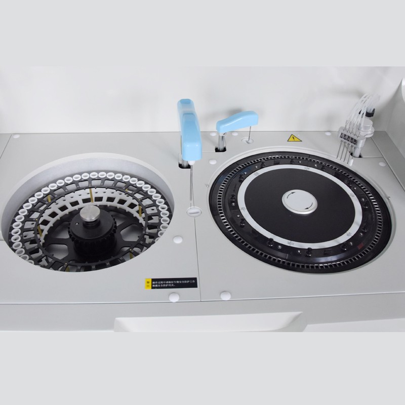 11、试剂盘:56个试剂位,最大可同时分析56个生化试剂项目;同一项目可安排多个试剂位,第一个报警缺少试剂时自动到第二试剂位抽取试剂,依次类推。