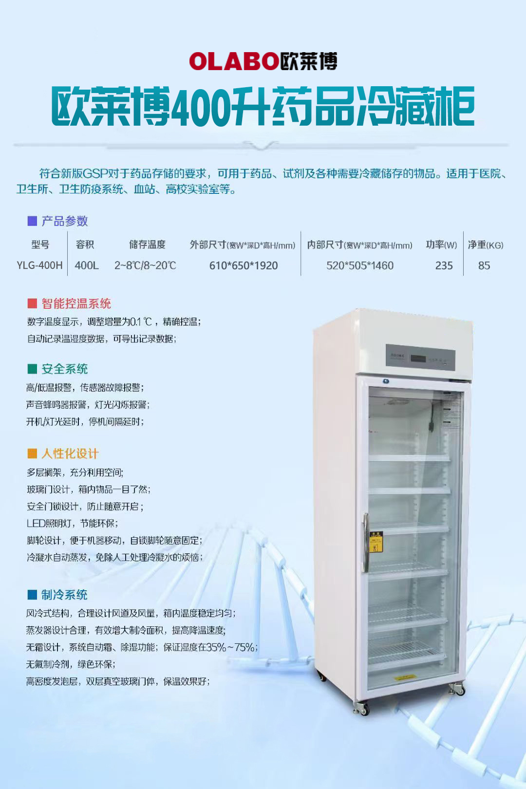 *控制性能:专利防凝露医用冷藏箱箱体,专利内循环通风,完全符合GSP标准